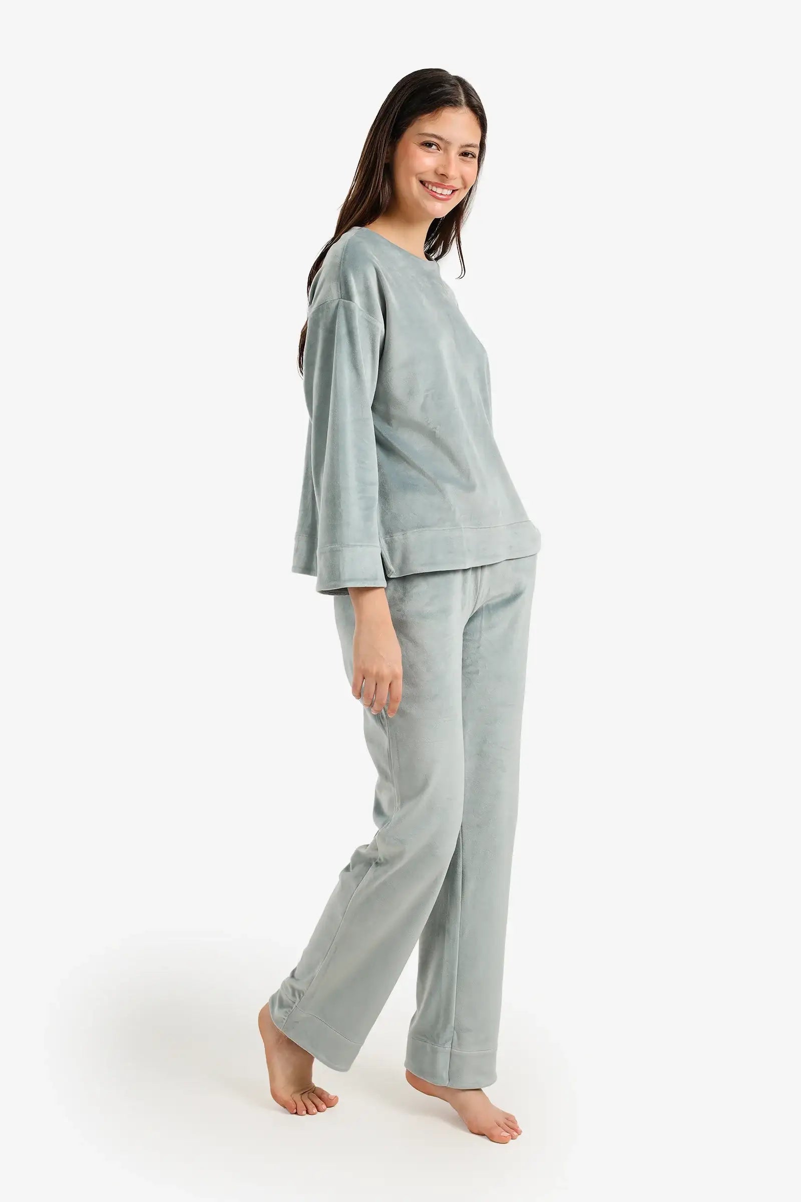 Velvet Long-Sleeve Pyjama Set