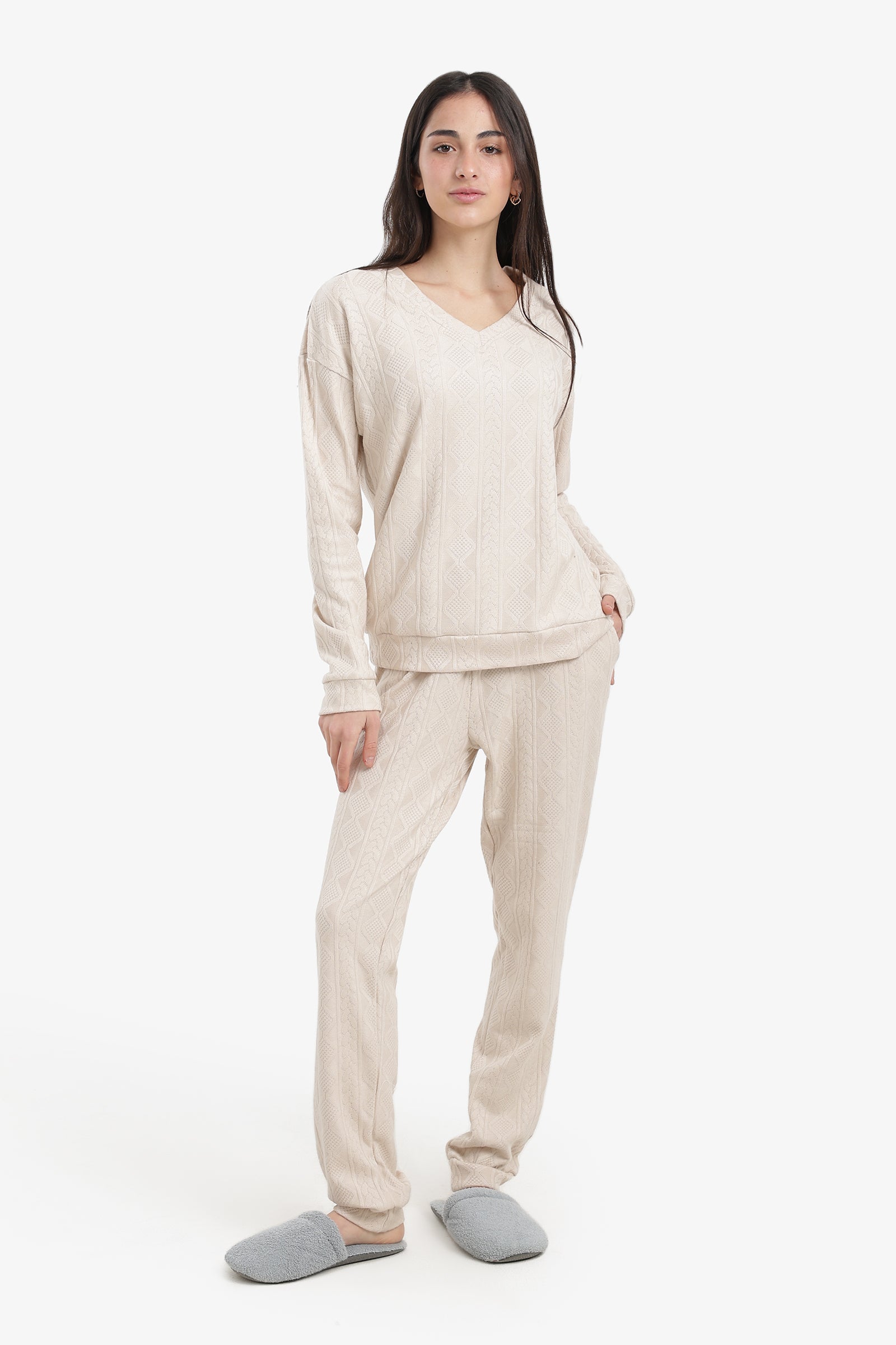 Cable Knit Pattern Pyjama Set