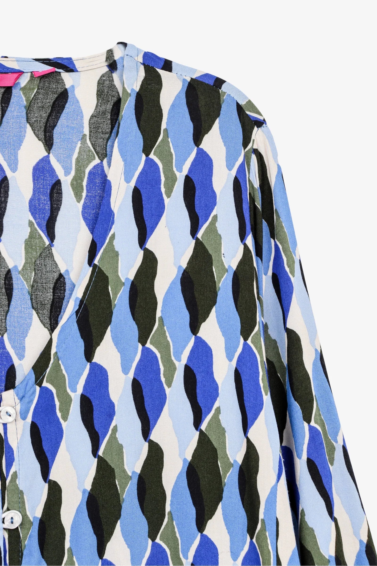 Add a touch of elegance to your wardrobe with our Printed Dress, designed for both style and comfort. Made from a soft viscose blend, this dress features a relaxed fit that flatters every body shape while offering ultimate comfort. The beautiful printed pattern adds a playful yet sophisticated touch, making it perfect for both casual and semi-formal occasions.With a V-neck, button-down closure, and a full placket, this dress exudes classic charm, while the long sleeves with elastic cuffs give it a modern edge. The midi length provides versatility, making it suitable for a variety of occasions, from brunch to evening events. The easy-to-wear design ensures you'll look effortlessly chic wherever you go.